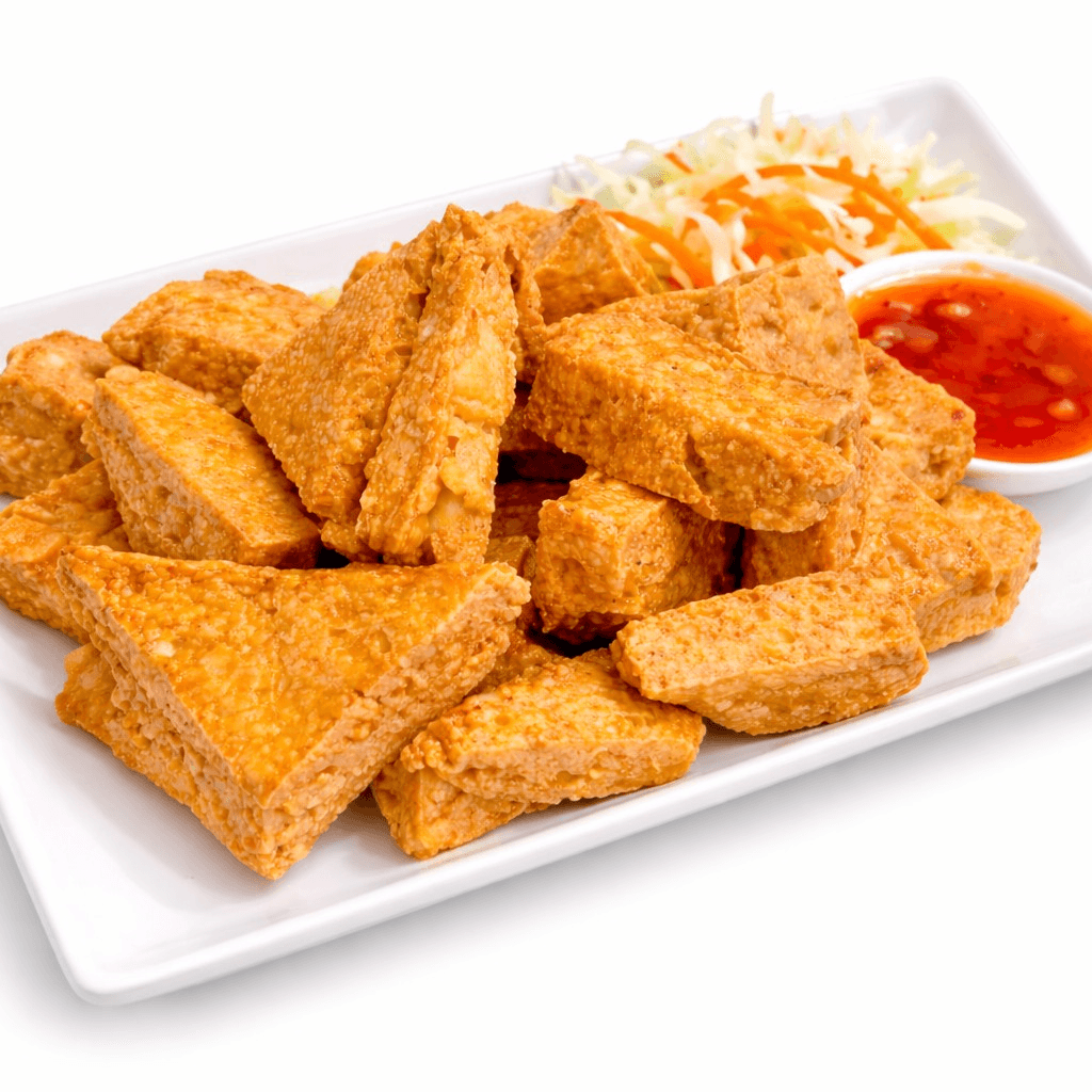 Deep fried tofu served with sweet and sour sauce topped with peanuts