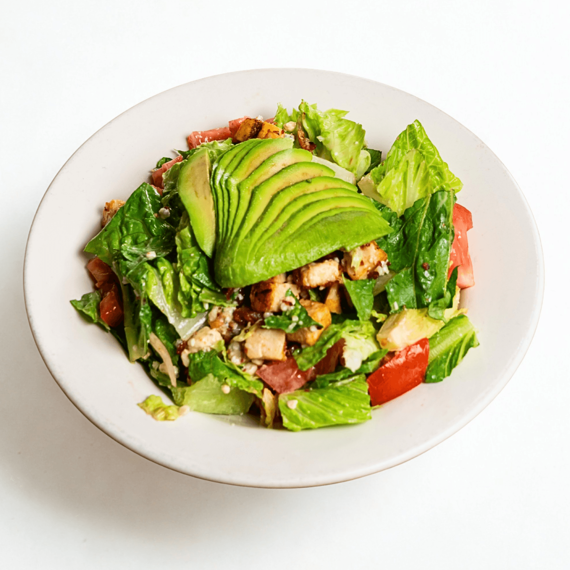 Crisp romaine topped with grilled chicken, bacon, avocado, tomatoes, Gorgonzola, and a tangy blue cheese vinaigrette